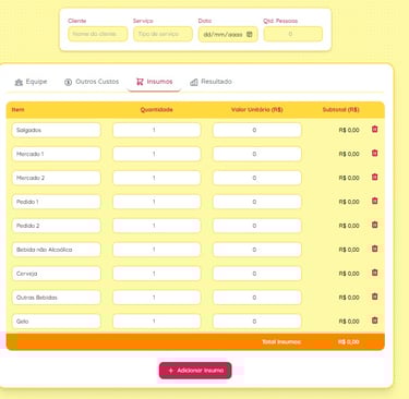 É uma ferramenta inteligente, feita sob medida pra quem vive de eventos — e quer parar de errar nos preços